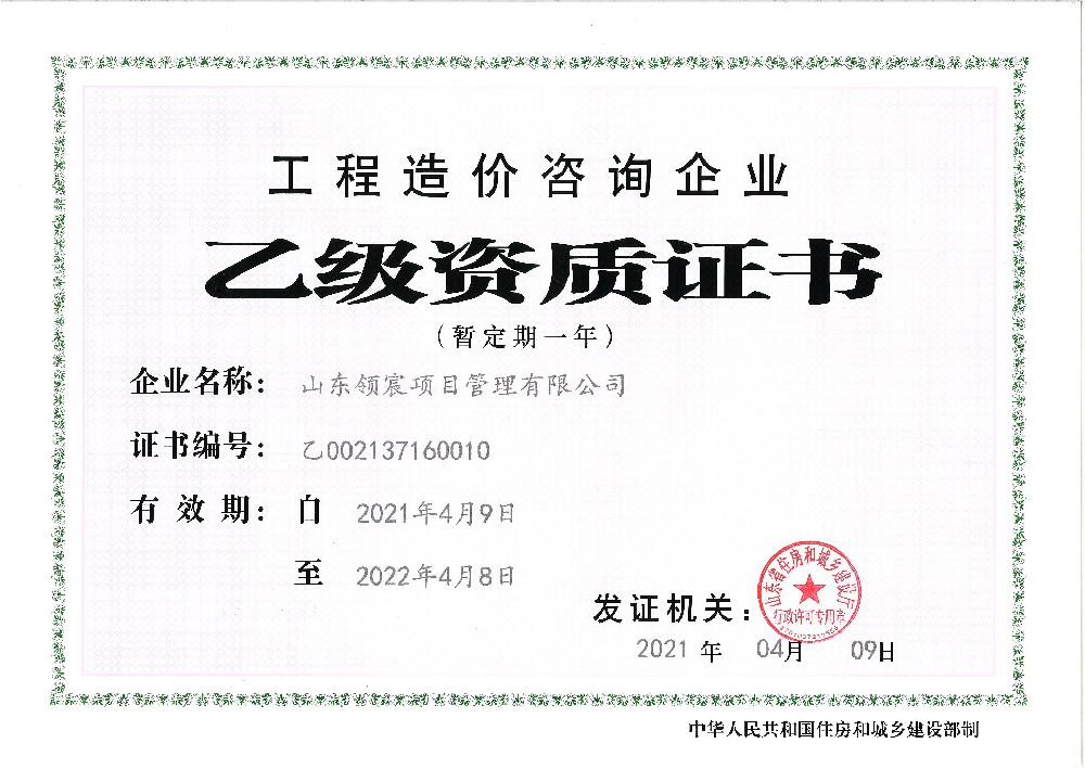 山東領(lǐng)宸項(xiàng)目管理有限公司是一家以全過程工程咨詢?yōu)楹诵牡淖稍兎?wù)公司,本公司現(xiàn)具備工程造價(jià)咨詢乙級(jí)資質(zhì),房屋建筑工程、市政工程監(jiān)理乙級(jí)資質(zhì)和招標(biāo)代理備案。公司擁有專業(yè)的工作團(tuán)隊(duì)及豐富的行業(yè)經(jīng)驗(yàn),在行業(yè)領(lǐng)域內(nèi)具有雄厚的實(shí)力,企業(yè)管理人員擁有行業(yè)20年以上的資深行業(yè)工作經(jīng)驗(yàn)。公司現(xiàn)有專業(yè)技術(shù)人員50余人,具有一級(jí)注冊造價(jià)工程師、注冊監(jiān)理工程師、一級(jí)注冊建造師、二級(jí)注冊建造師、招標(biāo)師等工程類國家注冊執(zhí)業(yè)資格證書人員合計(jì)30余人以及高級(jí)工程師3人,持證上崗率達(dá)到90%......